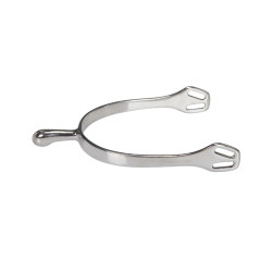 Éperons anglais avec petite molette, caractérisés par un double œillet, dont l'un est évasé, offrant une excellente stabilité.