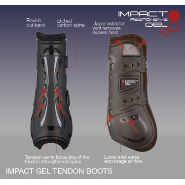 Une gamme de guêtres de saut à la protection ventilée améliorée. Coquille légère et résistante aux chocs, moulée anatomiquement pour soutenir le boulet et le tendon.